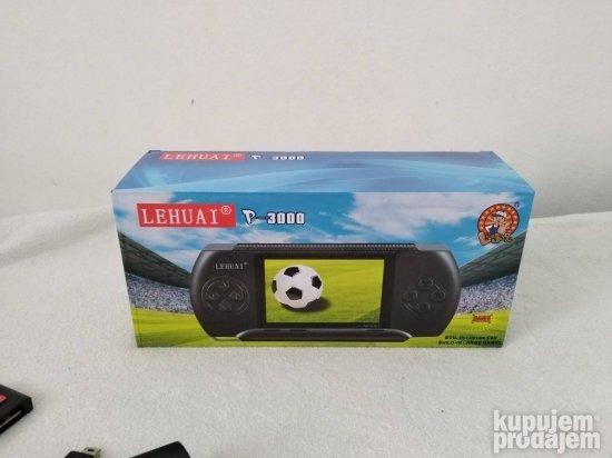 ? Konzola p-3000? Igrajte sve igre koje već imate! Poboljšani ekran sa pozadinskim osvetljenjem za igru bilo gde. Koristite AV kabl za povezivanje sa sistemom na A / V priključnicu za upotrebu sa televizijom. Uključuje ispravljač i litijum-jonsku punjivu bateriju. Do 6-7 sati neprekidne igre.