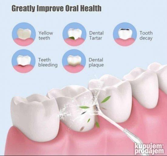 Brzo i jednostavno isperite zube i desni pomocu ovog ispiraca. Samo napunite vodom ili sredstvom za ispiranje usta i usmerite i pritisnite da biste odbacili prljavstinu i ostatke hrane izmedju zuba i desni Vazduh pravi pritisak i voda nezno uklanja ostatke hrane. Negujte svoje desni i zube pogotovu ako ste pusac. Naucno je dokazano da posle tridesete godine zivota problemi sa desnima su glavni uzrocnici bolesti koje nastaju sa zubima. Zubi se cesce kvare a upale desni uzrokuju bol koji je jaci od bola koji stvara karijes. Ovaj aparat se takodje moze koristiti za odrzavanje nakita pritisak koji stvara cisti narukvice lancica i ostali nakit. Ovaj aparat izuzetno pomeze ljudima koji nose fiksnu protezu uz pomoc njega isprace svoje desni i zube na jako jednostava nacin.