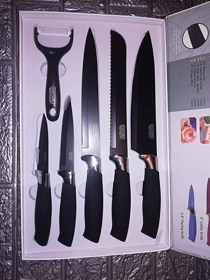 Set od 5 moderno dizajniranih noževa i jedan ljustač za povrce i voce.