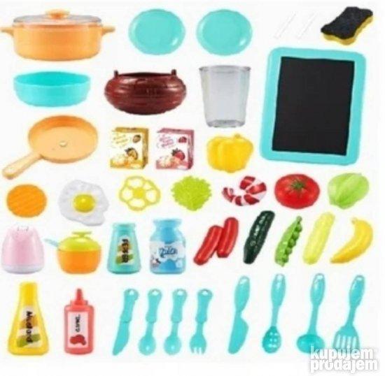 Komplet za igru omogućit će mladim domaćicama da uživaju u vremenu u kuhinji. U kompletu se nalazi kuhinja za igračke sa zvučnim i svjetlosnim modulima što će igru učiniti još zanimljivijom. Uključeni su i dodaci. Uz ovaj set djevojčice će moći igrati zanimljive igre simulirajući pripremu raznih jela u kuhinji. Za rad potrebno: 6 AA baterija (nisu uključene). Veličina kuhinje: 515x235x72 cm kuhinja sa dodacima svetlosnim i zvučnim efektima 38 predmeta